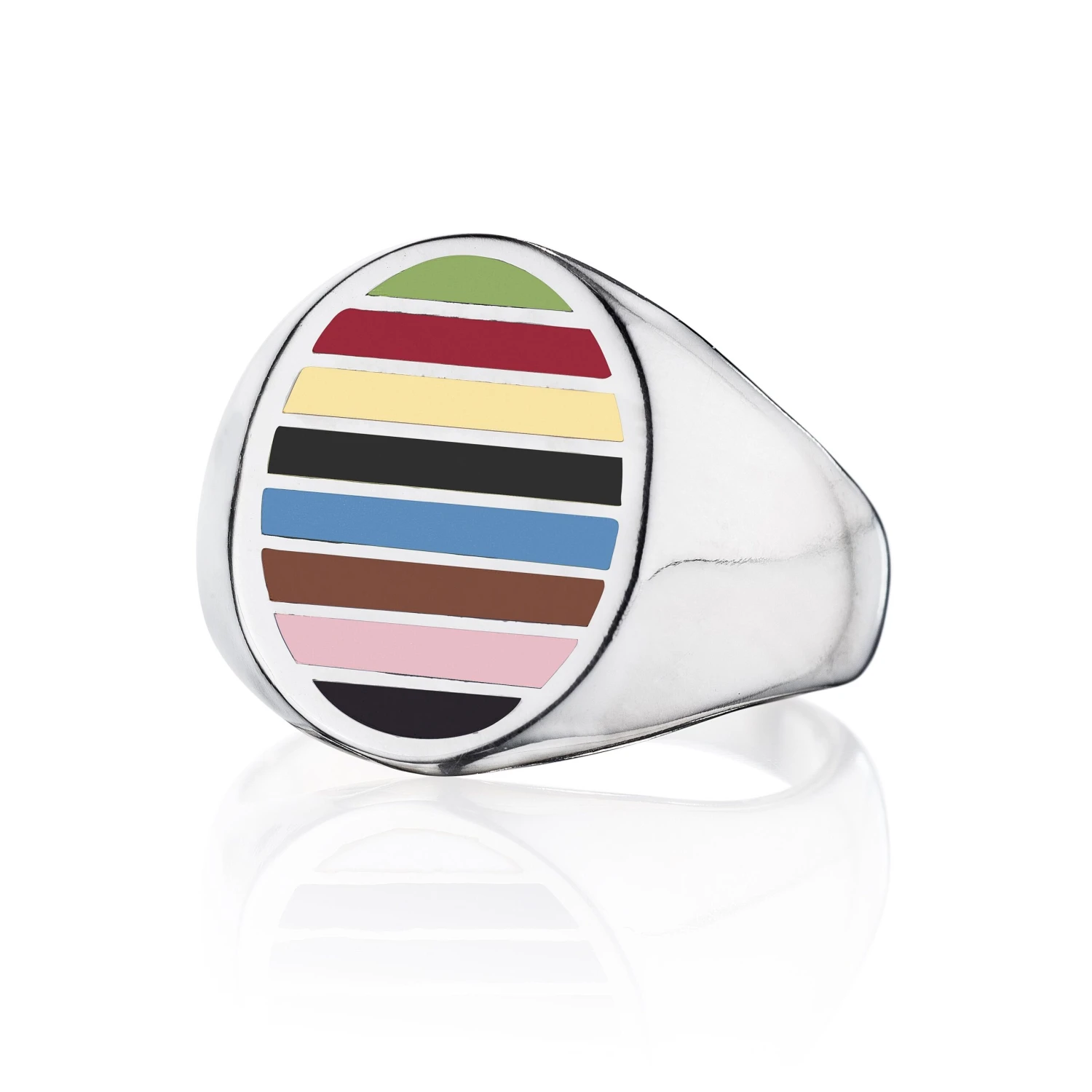Handcrafted by Jessica Biales. The classic signet ring in croquet stripe. In sterling silver or 18k gold and enamel. Made in NYC.