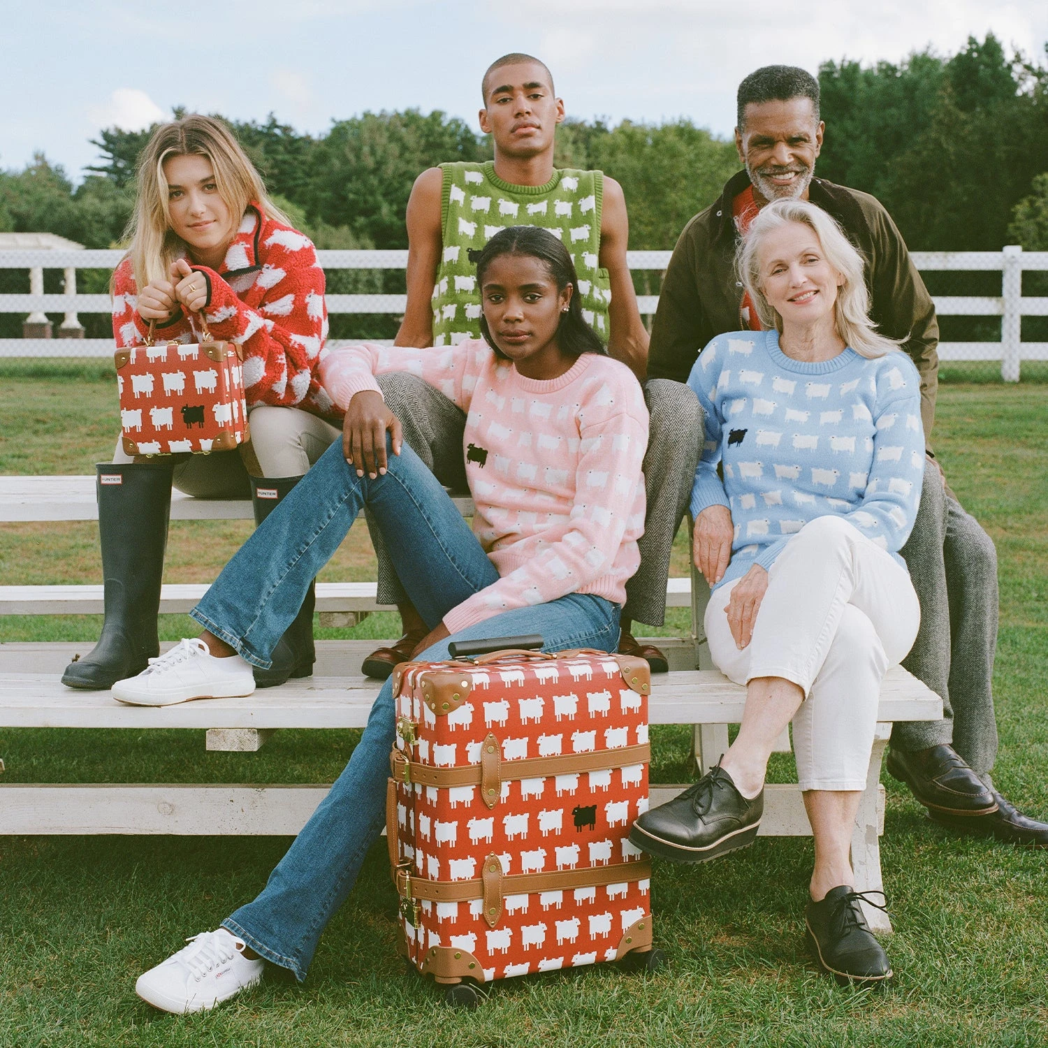 The Warm & Wonderful x Globe-Trotter capsule features Globe-Trotter’s signature Trolley Carry-On case in Warm & Wonderful’s trademark red, white and black sheep pattern.